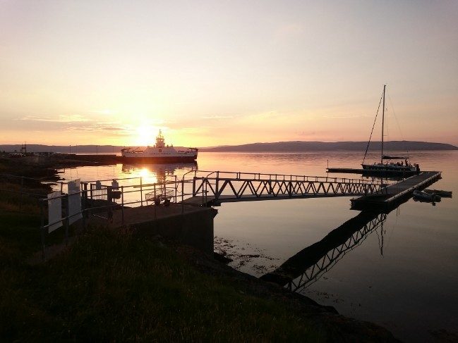 The West Coast of Scotland has always been a mecca for cruising yachtsmen. Virtually in the centre of this cruising area lies the beautiful village of Lochranza. In former times it harboured an extensive fishing fleet. However facilities for visiting yachtsmen were decidedly limited. Access from boat to shore was difficult. In 2005 a then local resident and keen yachtsmen, Norman Swain suggested a pontoon facility be provided. As a result a Community Interest Company (Lochranza and Catacol Sea Society cic) was formed and after much hard work and fundraising the pontoon was installed. In 2008 it was opened by (the late) Lady Jean Fforde.